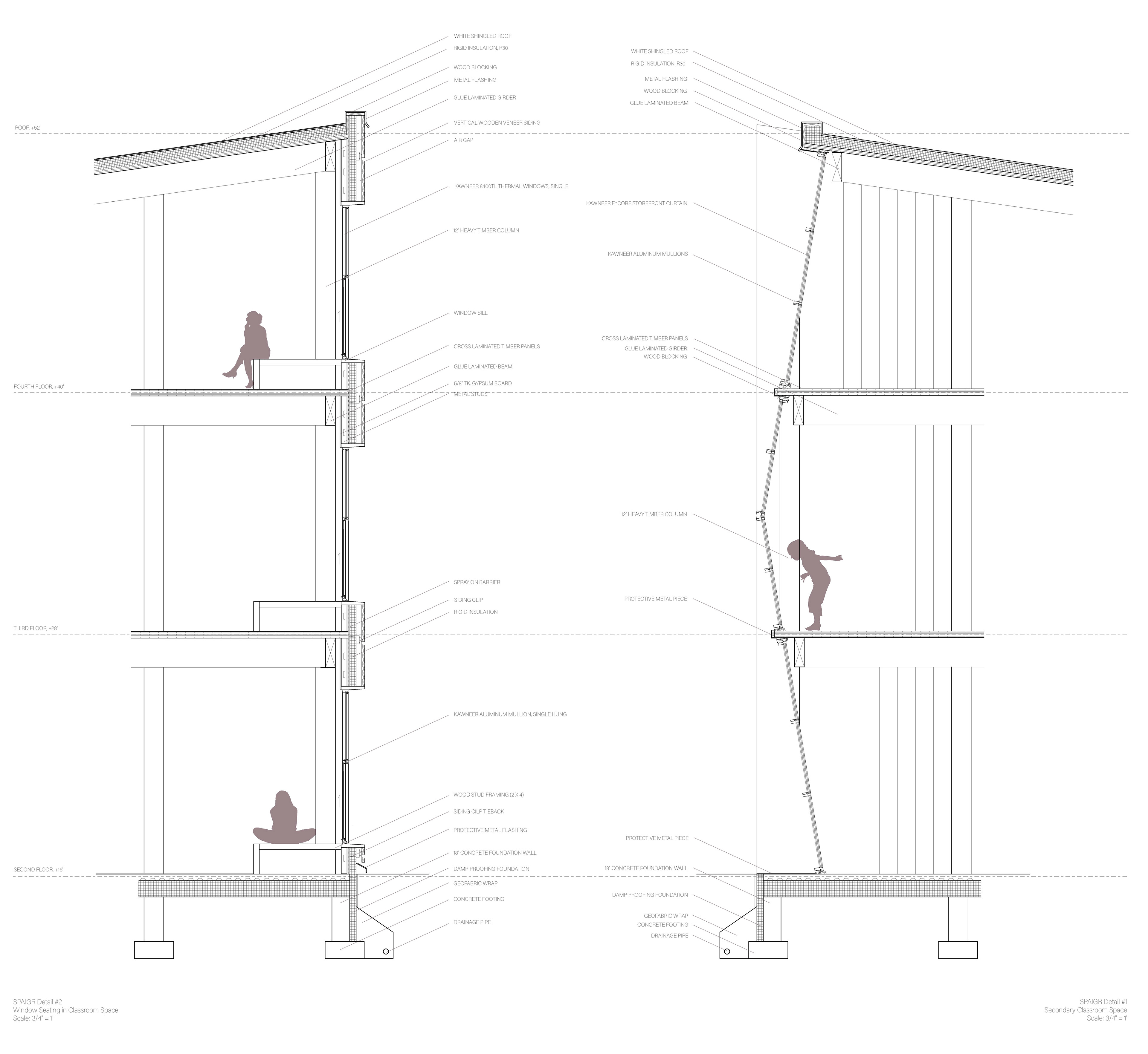 The overall objective of this design was to create an abundant variety of collaborative spaces that catered to the needs of not only the students, but the faculty and community as well. The main massing idea is taken from the opposing street (Westmont Avenue) and conveys the shape of the communal spaces on the southern side of the building - these include the think lab and cafetorium. The northern side holds all the 12 classroom studios that receive plenty of soft northern light. The studios also hold a series of learning spaces that I organized into a hierarchy of primary, secondary, and tertiary. There is also a variety of sustainable design techniques in order to reduce EUI and use of mechanical systems, while still providing plenty of daylight to all learning spaces.